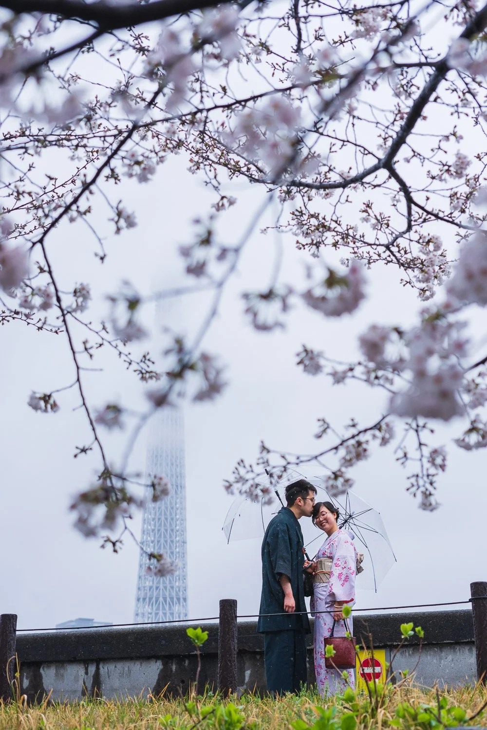 Many people asked me about having a photoshoot on a rainy day and several got worried about the result. This wasn’t the case with Fong & Kathy. Regardless of the drizzling rain on the day, they came with 150% upbeat spirit and embraced fun moments they shared. In fact, the wet weather drove away the crowd and allowed us to have all the beautiful city & cherry blossom backdrops to ourselves.